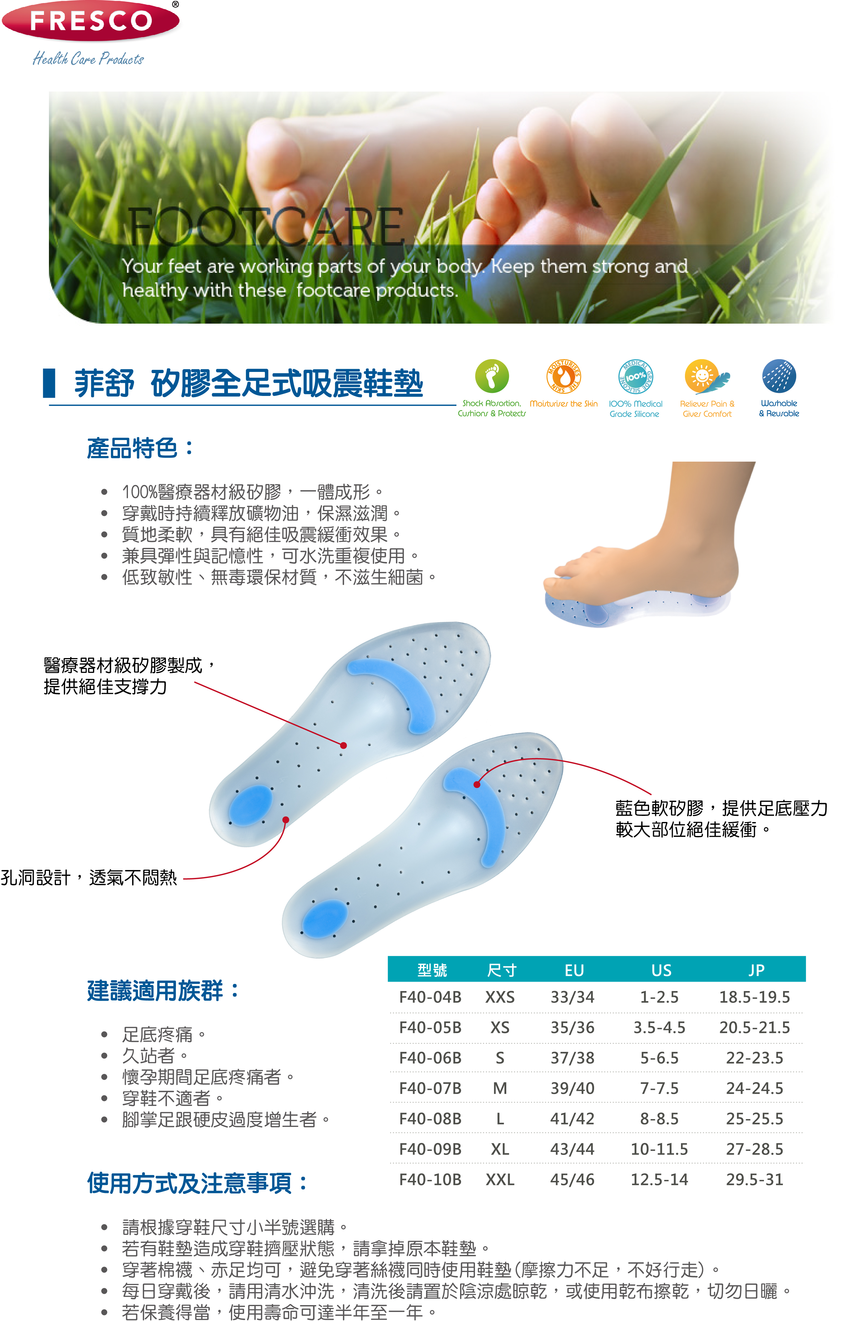 ◆注意事項: 外傷不建議使用。本產品可能含有矽膠,矽膠過敏者應避免使用。矽膠 / 凝膠具天然黏性,可視需要使用痱子粉增加舒適性。